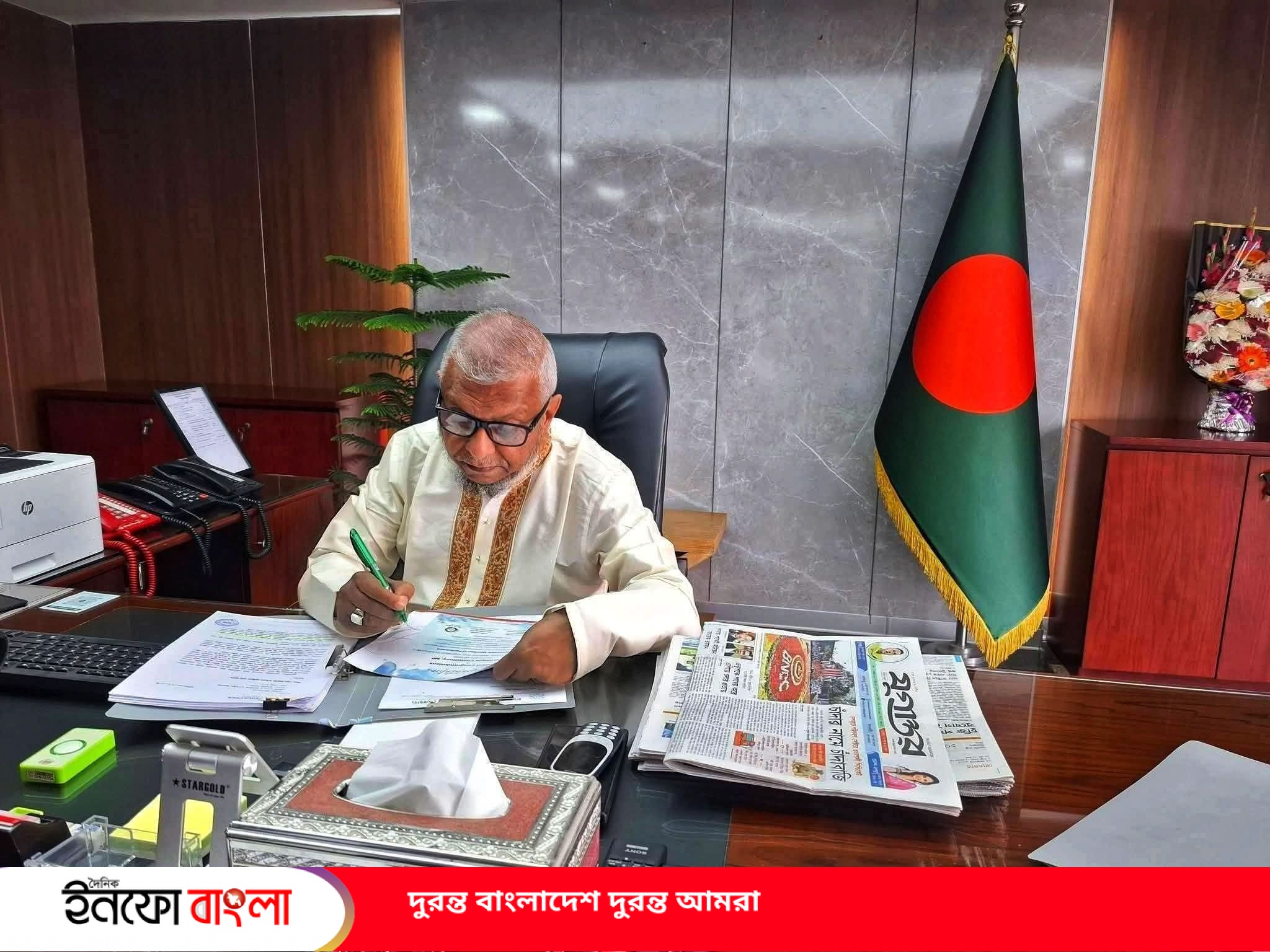 করবো কাজ, গড়বো দেশ—সবার আগে বাংলাদেশ।