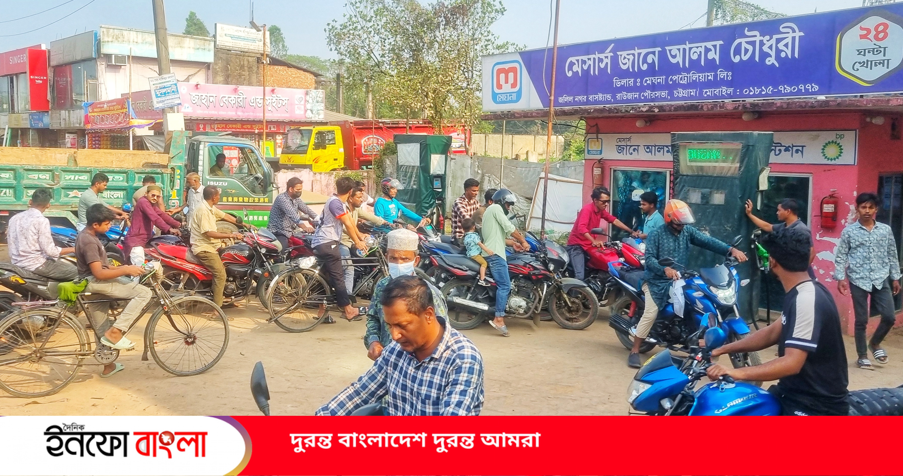 রাউজানের পেট্রোল পাম্পগুলোতে মোটরযানের ভিড় : নিয়ম মেনে বিক্রি হচ্ছেনা জ্বালানি