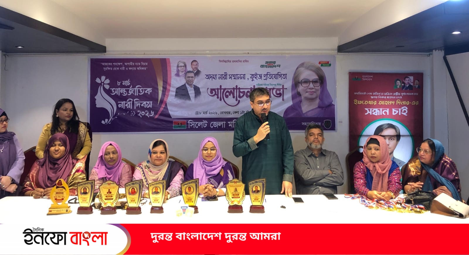 রোববার ৮ মার্চ দুপুরে আন্তর্জাতিক নারী দিবস উপলক্ষে সিলেট জেলা মহিলা দল আয়োজিত অদম্য নারী সম্মাননা, কুইজ প্রতিযোগিতার পুরষ্কার বিতরণ ও আলোচনা সভায় প্রধান অতিথির বক্তব্যে তিনি এসব কথা বলেন।