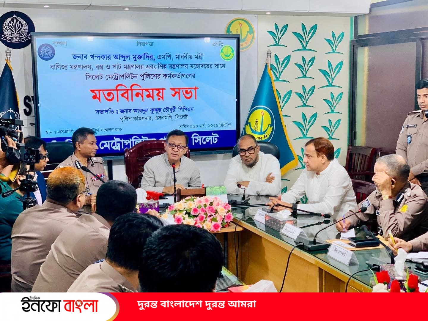 মঙ্গলবার (১০ মার্চ ) সিলেট মেট্রোপলিটন পুলিশের (এসএমপি) কর্মকর্তাদের সঙ্গে মতবিনিময় সভায় প্রধান অতিথির বক্তব্যে তিনি এসব কথা বলেন। মন্ত্রী বলেন, আমাদের দেশ এখনও সম্পদে সীমিত। তবুও যে সম্পদ ও সক্ষমতা রয়েছে, তা দিয়েই সর্বোচ্চ আন্তরিকতার সঙ্গে কাজ করতে হবে। আইনশৃঙ্খলা রক্ষায় পুলিশকে আরও সক্রিয় ও কার্যকর ভূমিকা রাখতে হবে।এসএমপি কমিশনার আব্দুল কুদ্দুছ চৌধুরী পিপিএমের সভাপতিত্বে অনুষ্ঠিত মতবিনিময় সভায় বক্তব্য দেন সিলেট সিটি কর্পোরেশনের প্রশাসক আব্দুল কাইয়ুম চৌধুরী। তিনি বলেন, আমরা সন্ত্রাসমুক্ত ও শান্তির নগর হিসেবে সিলেটকে গড়ে তুলতে চাই। সেই লক্ষ্যেই সবাই নিজ নিজ অবস্থান থেকে কাজ করে যাচ্ছেন। সবার সম্মিলিত প্রচেষ্টায় সন্ত্রাসমুক্ত সিলেট গড়ে তোলা সম্ভব হবে বলে তিনি আশা প্রকাশ করেন।সভায় খন্দকার আব্দুল মুক্তাদির পুলিশের কার্যক্রম আরও গতিশীল করতে পর্যাপ্ত যানবাহনের ব্যবস্থা, আবাসন সুবিধাসহ বিভিন্ন সমস্যার সমাধানে প্রয়োজনীয় পদক্ষেপ নেওয়ার আশ্বাস দেন।মতবিনিময় সভায় আরও বক্তব্য দেন জেলা প্রশাসক মো. সারওয়ার আলম, সিলেট মহানগর পুলিশের অতিরিক্ত কমিশনার (উত্তর ও দক্ষিণ), সিলেট মহানগর বিএনপির ভারপ্রাপ্ত সভাপতি রেজাউল হাসান কয়েস লোদী এবং সাধারণ সম্পাদক ইমদাদ হোসেন চৌধুরী। সিলেট মেট্রোপলিটন পুলিশের প্রধান কার্যালয়ে অনুষ্ঠিত সভায় উপকমিশনারবৃন্দ, বিভিন্ন থানার অফিসার ইনচার্জসহ পুলিশের ঊর্ধ্বতন কর্মকর্তারা উপস্থিত ছিলেন।