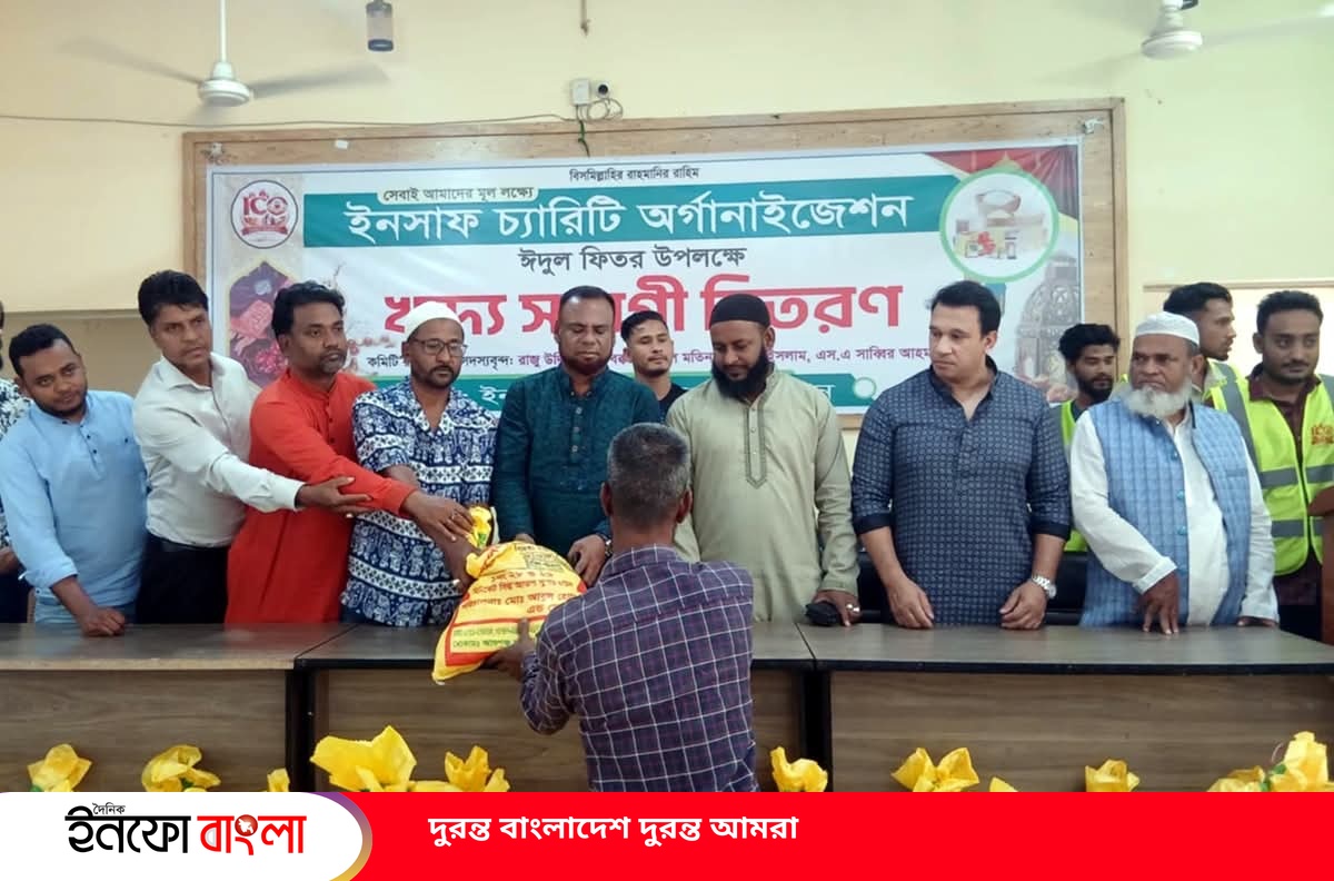 ইনসাফ চ্যারিটি অর্গানাইজেশনের কার্যকরী কমিটির সদস্য রাজু উদ্দিন, আবু বক্কর, আব্দুল মতিন, নাজমুল ইসলাম, এস এ সাব্বিরের উদ্যোগে এবং প্রবাসী ও ব্যবসায়ীদের সার্বিক সহযোগিতায় ১২০টি পরিবারের মধ্যে ওই খাদ্যসামগ্রী বিতরণ করা হয়। বিতরণকৃত খাদ্যসামগ্রীর মধ্যে ছিল চাল, ডাল, পিয়াজ, আলু, সেমাই, চিনি ও দুধ।