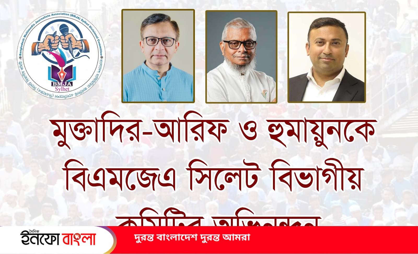 মুক্তাদির-আরিফ ও হুমায়ুনকে বিএমজেএ সিলেট বিভাগীয় কমিটির অভিনন্দন